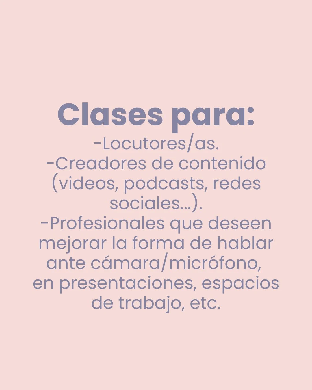 -Profesionales que deseen mejorar la forma de hablar ante cámara/micrófono, en presentaciones, etc.