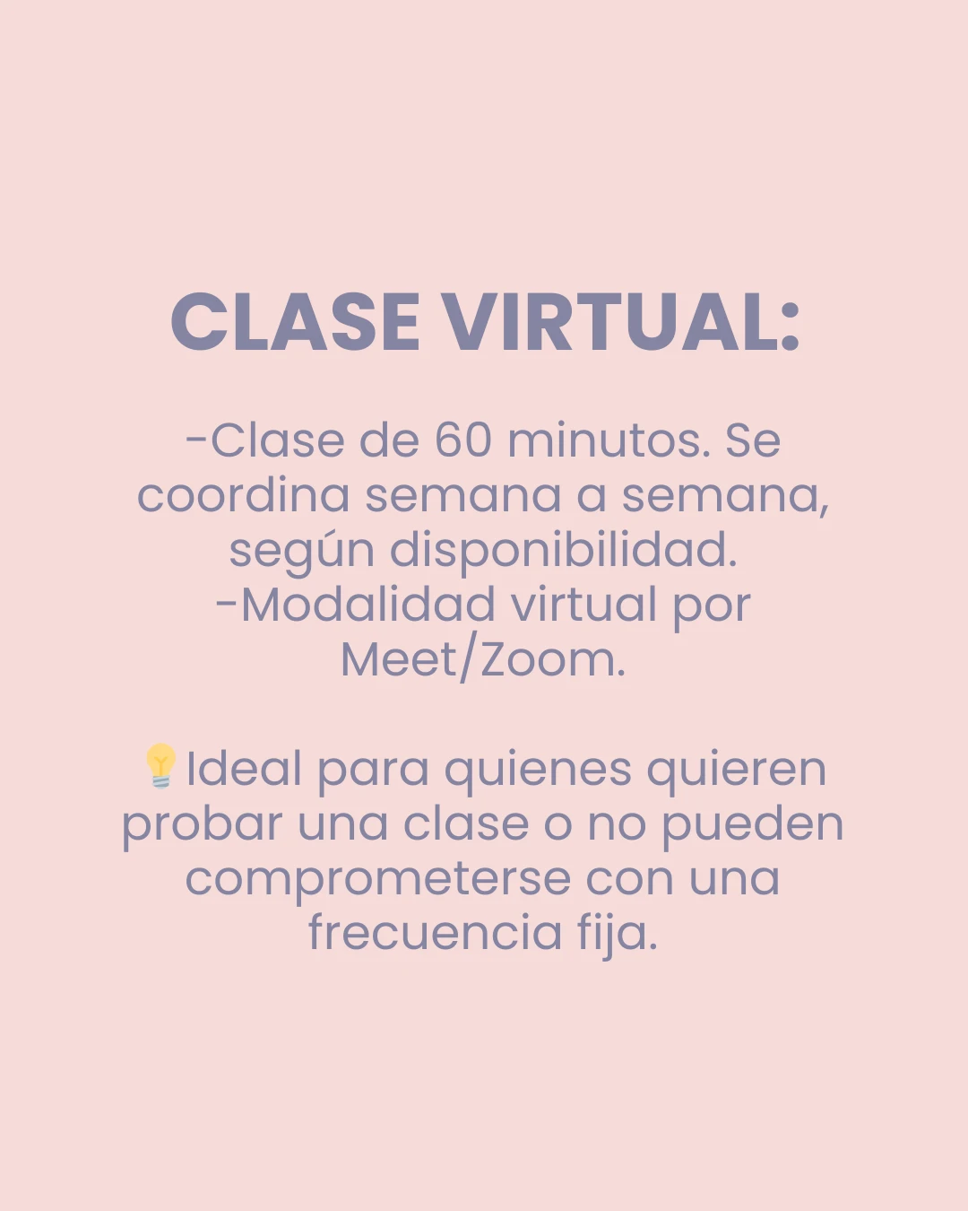 🕒Duración: 60 minutos. Se coordina semana a semana, según disponibilidad.